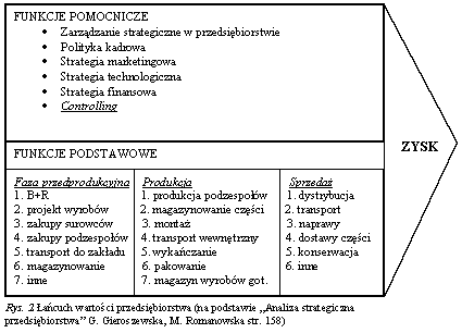 Implementacja systemu controllingowego daje możliwość przedsiębiorstwu przejścia od struktury chaotycznej, w której brak dobrze zdefiniowanych kanałów przepływu informacji i uprawnień (zarządzanie autorytarne), do struktury hierarchicznie zdecentralizowanej o określonej harmonii wewnętrznej. Ściśle określone powiązania strukturalno - informacyjne pomiędzy komórkami w organizacji dają możliwość osiągnięcia wartości dodanej poprzez wytworzenie efektu synergii. Controlling wykorzystuje odpowiednio zagregowany sposób obserwacji szczególnie ważnych grup kosztowych, co umożliwia szybszą i bardziej efektywną reakcję na występujące zakłócenia. Poza tym controlling pokazuje (poprzez odpowiednią analizę), które grupy towarowe są dla przedsiębiorstwa obciążeniem, a które stanowią produkty strategiczne. Daje to możliwość weryfikacji asortymentowej, a w konsekwencji lepsze wykorzystanie potencjału wytwórczego przedsiębiorstwa. Wówczas rezygnuje się ze strategii maksymalizacji zysku na rzecz optymalizacji zysku przy założonych wartościach krytycznych (brzegowych). Taka zmiana strategii daje przedsiębiorstwu możliwość zwiększenia swojej konkurencyjności, a to pociąga za sobą znaczniejsze dopasowanie się do reguł rynkowych.