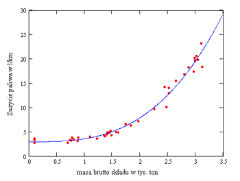 Tak więc, naszym zadaniem będzie określenie funkcji kosztu paliwa w zależności od masy składu pociągu. Znajomość takiej funkcji ułatwi nam działania w kilku płaszczyznach: