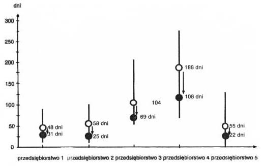 Pokazują to doświadczenia pewnego zespołu roboczego działającego przy WHU "Benchmarking controlling", dotyczące czasu załatwiania akceptacji wniosków inwestycyjnych. Prezentuje to poniższy rysunek.
